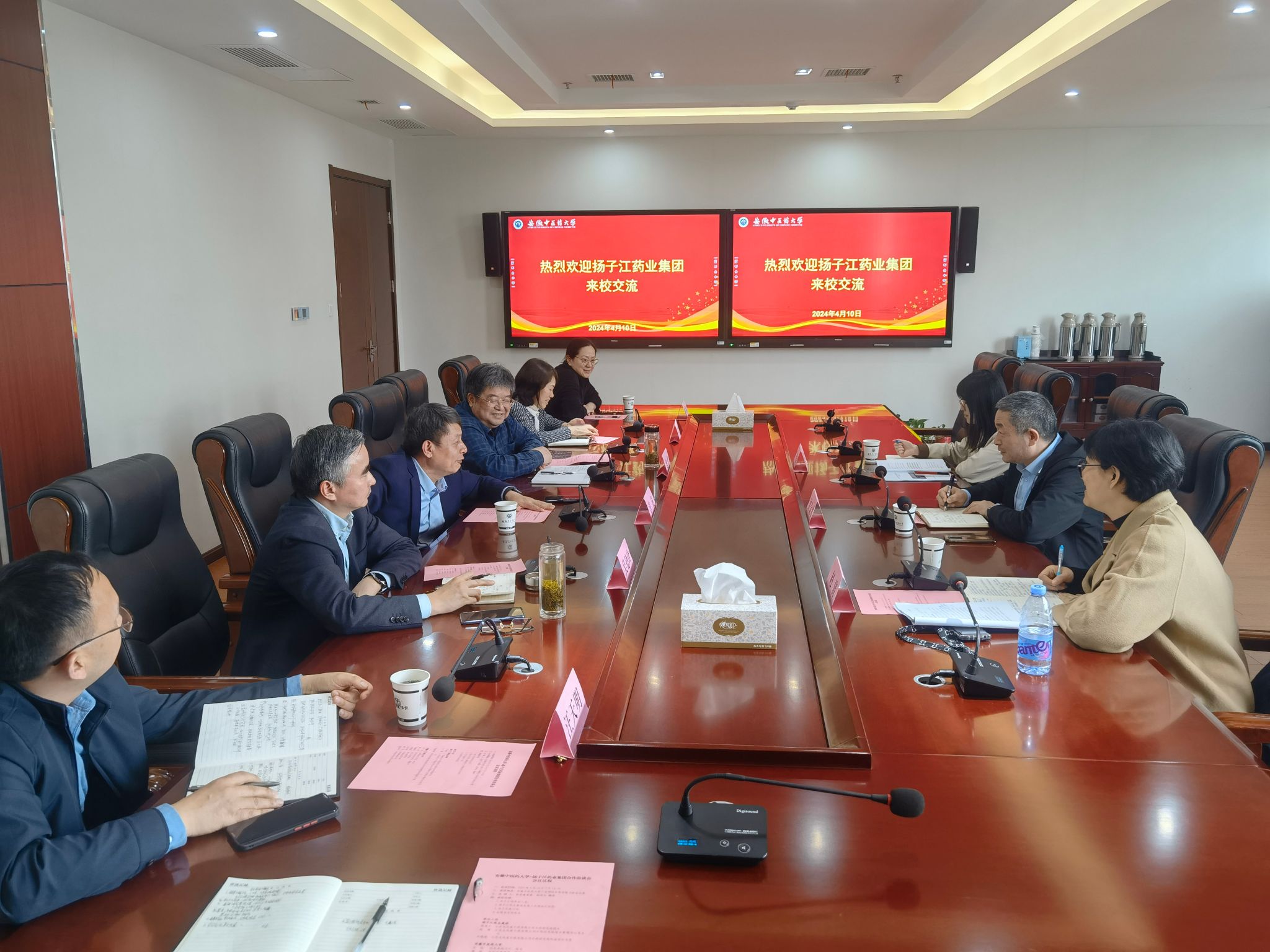 许钒对扬子江药业集团一行来校洽谈合作表示热烈欢迎,学校全力支持与扬子江药业集团共建中药制药工艺技术国家工程研究中心,他对双方在重大项目申报、成果转化等方面的合作充满期待。