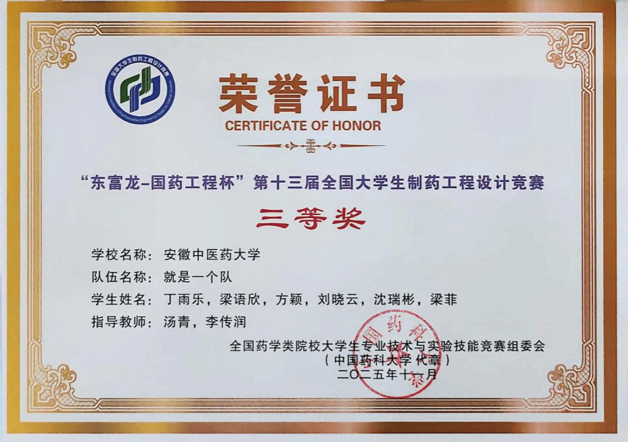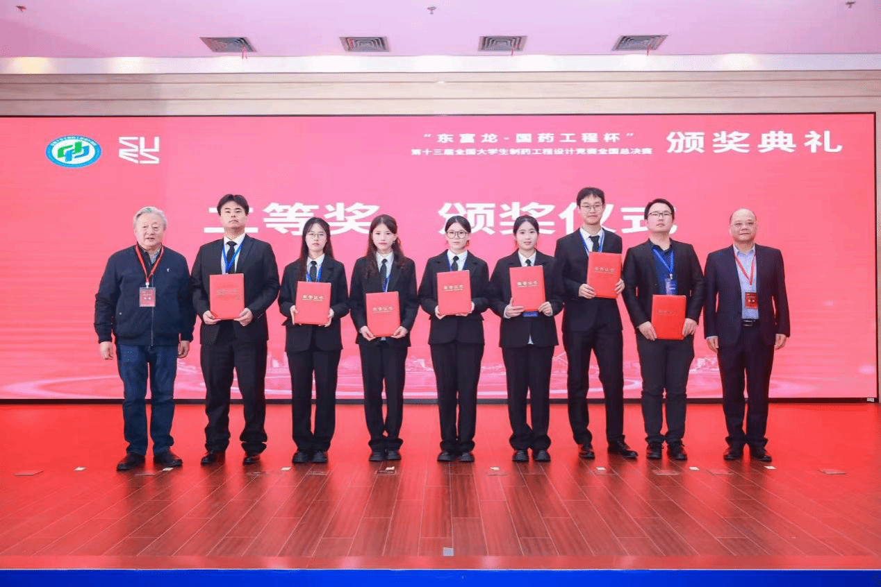 11月28日-30日,由全国药学类院校大学生专业技术与实验技能竞赛组委会主办,东富龙科技集团股份有限公司和中国医药集团联合工程有限公司协办,上海工程技术大学承办的“东富龙—国药工程杯”第十三届全国大学生制药工程设计竞赛全国总决赛在上海工程技术大学圆满落幕。我校荣获二等奖两项,三等奖一项。