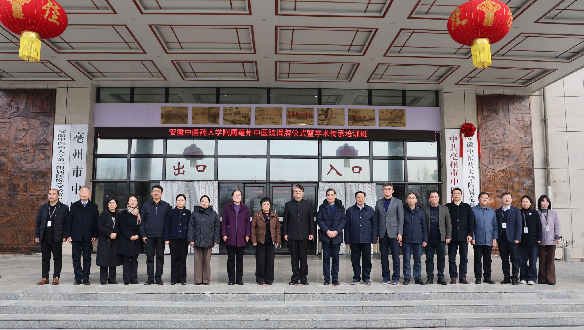 1月14日上午,安徽中医药大学与亳州市政府共建安徽中医药大学附属亳州中医院揭牌仪式在亳州市中医院隆重举行。校党委常委、副校长聂久胜,亳州市副市长曹振萍,全国名中医杨骏,安徽省国医名师张杰,亳州市卫生健康委主任刘梦汝、市中医药管理局局长张建影出席仪式,亳州市政府副秘书长胡秋雯主持仪式。学校教务处、科技处、社会合作处负责同志以及亳州市中医院领导班子、市三县一区医院及各医联体单位代参加仪式。